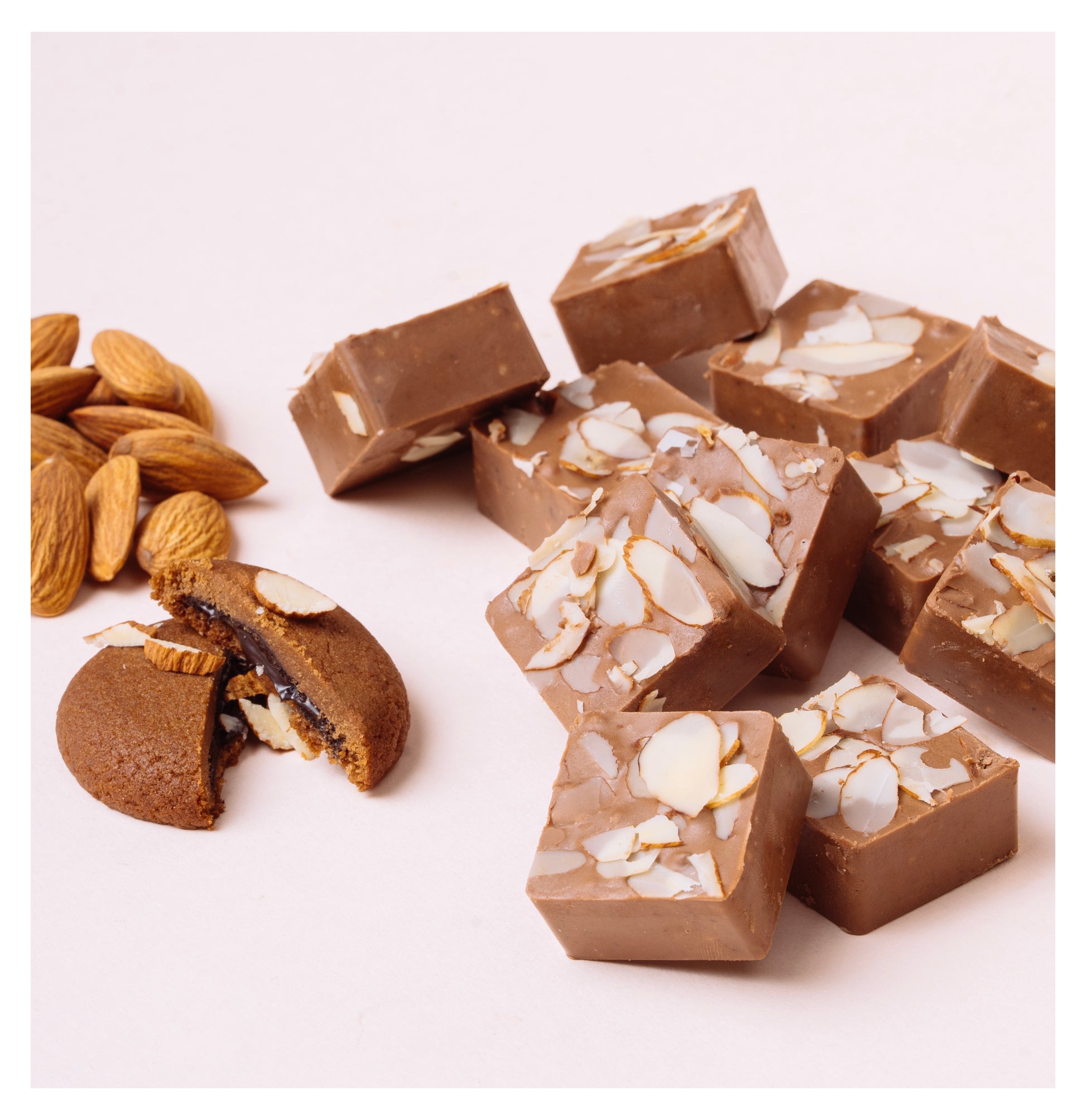 This fusion delight is made with smooth milk chocolate, blended with crumbled Dark Fantasy cookies and crunchy roasted almonds, then topped with almond slivers for an irresistible crunch in every bite.